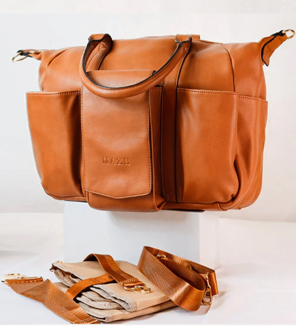 Mazh Vina Diaper Bags(Vegan Leather) is a elegant stylish unisex diaper bag, perfect for travelling with your newborn or toddler, while making shopping and travelling an ease. It can be used as a handbag, as well as be hung a stroller while out for strolls with your little one. * Please note the Mazh Vina Diaper Bag is used for illustrative purposes Only